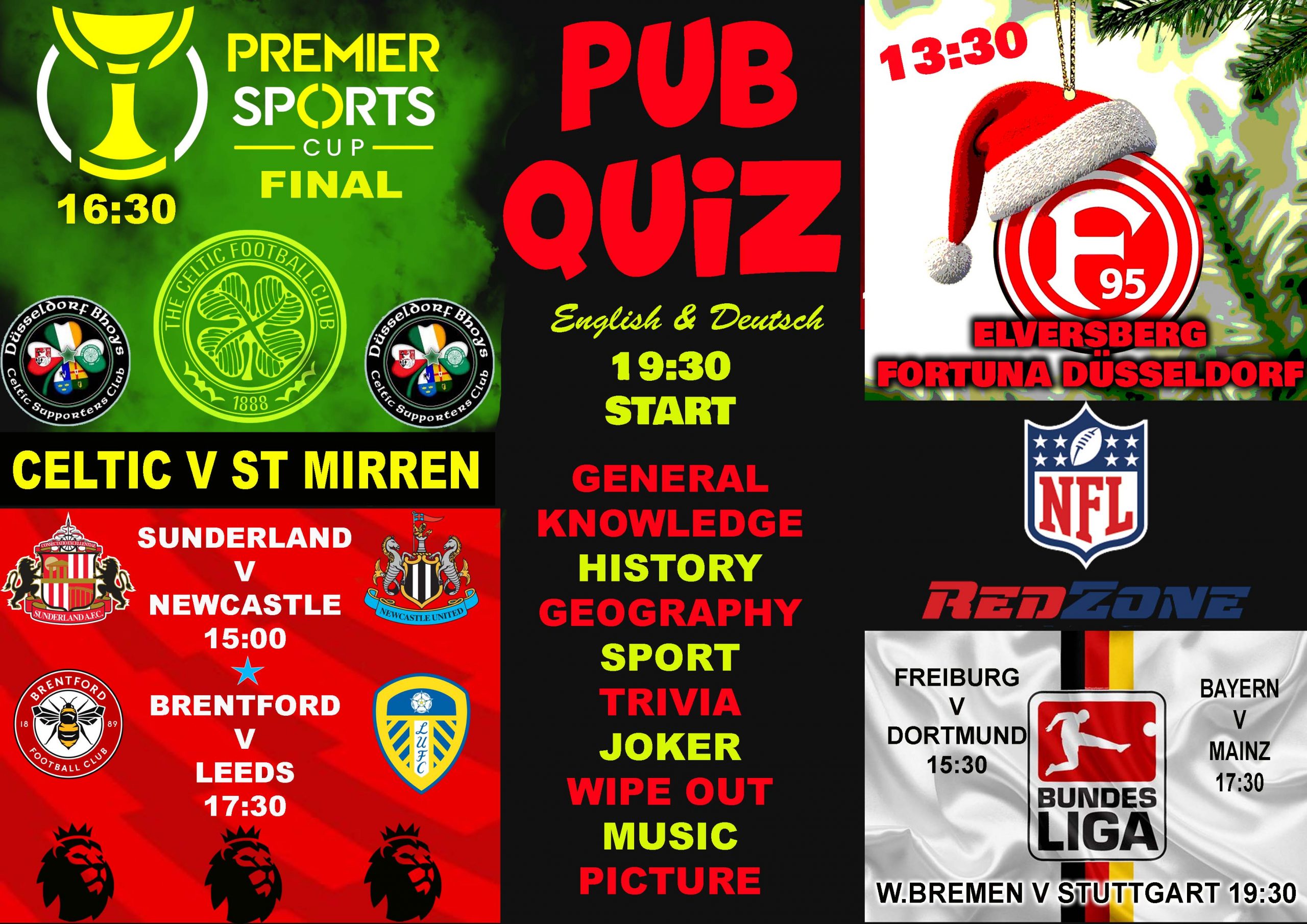 Celtic V St Mirren 16:30 - 14th December 2025, 19:30: Pub Quiz
