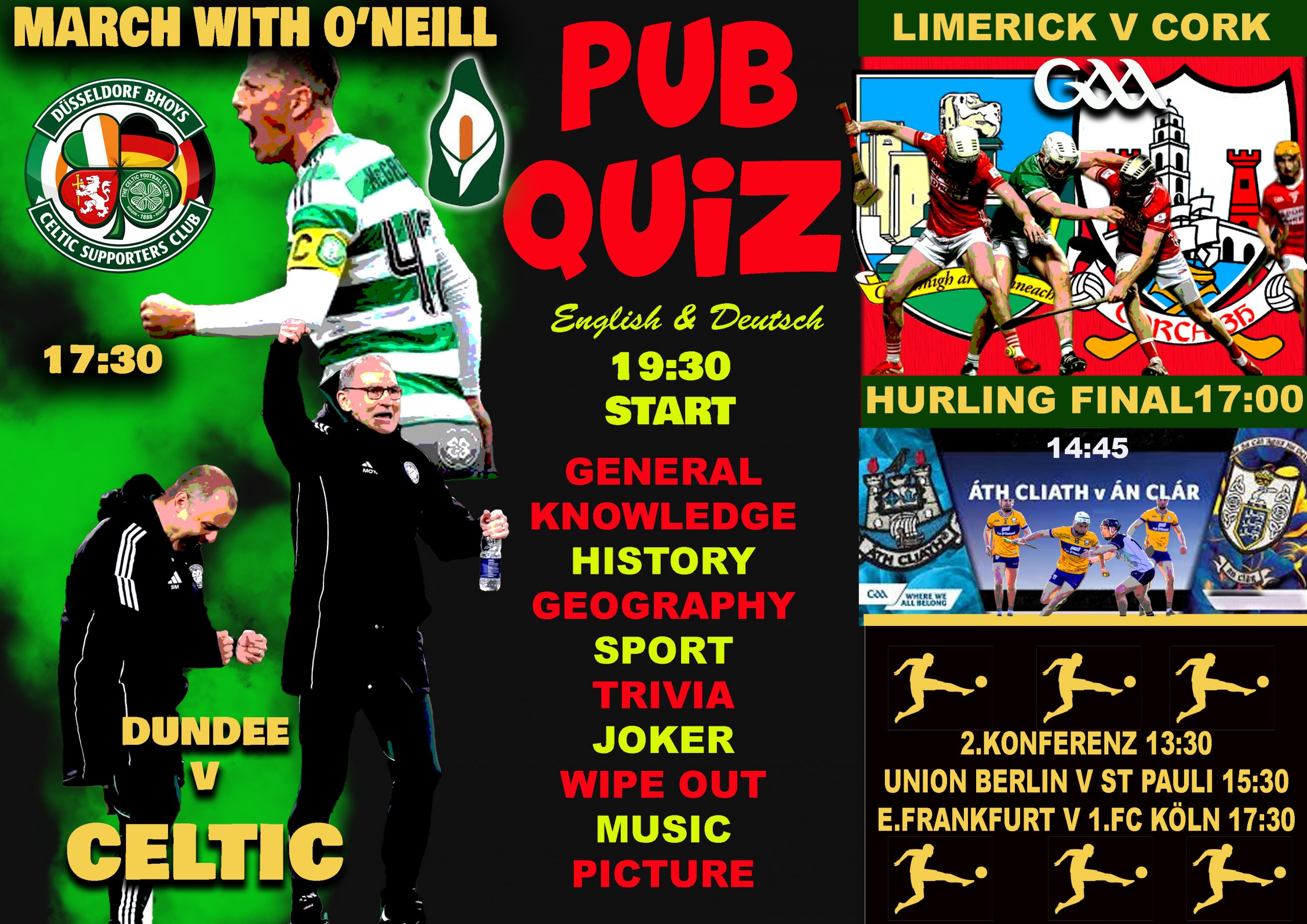 No Music Allowed In The Pubs - Never Mind - Come Along To Our Now Famous Good Friday/Karfreitag Quiz Special With The SILENT MUSIC ROUND. - 5th April 2026, 19:30: Hurling Final - Celtic -Pub Quiz